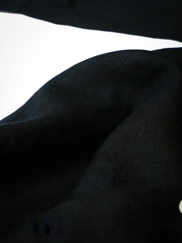 This shirt features a slightly heavier linen fabric that offers a sophisticated drape and an elevated summer look.