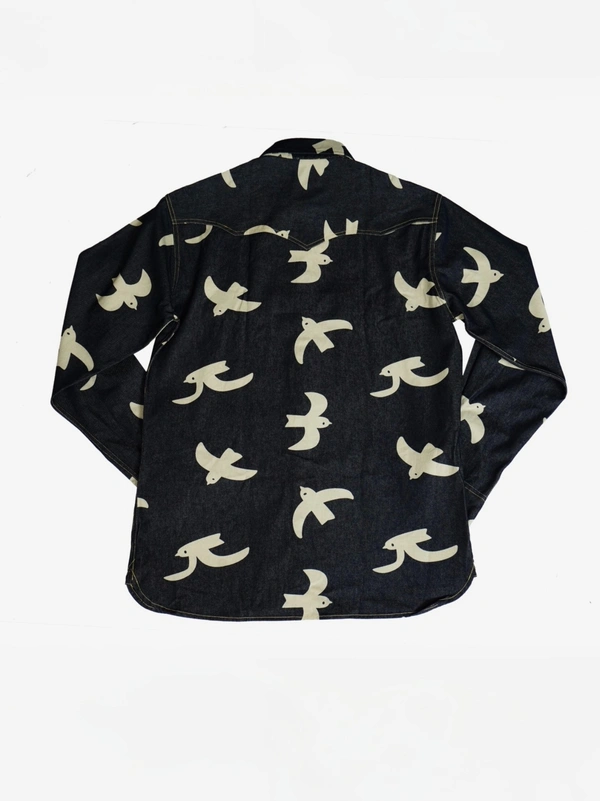 Designed with a sculpted yoke, classic western flap pockets, and luminous white pearl snap-buttons, this shirt blends craftsmanship and style seamlessly.
