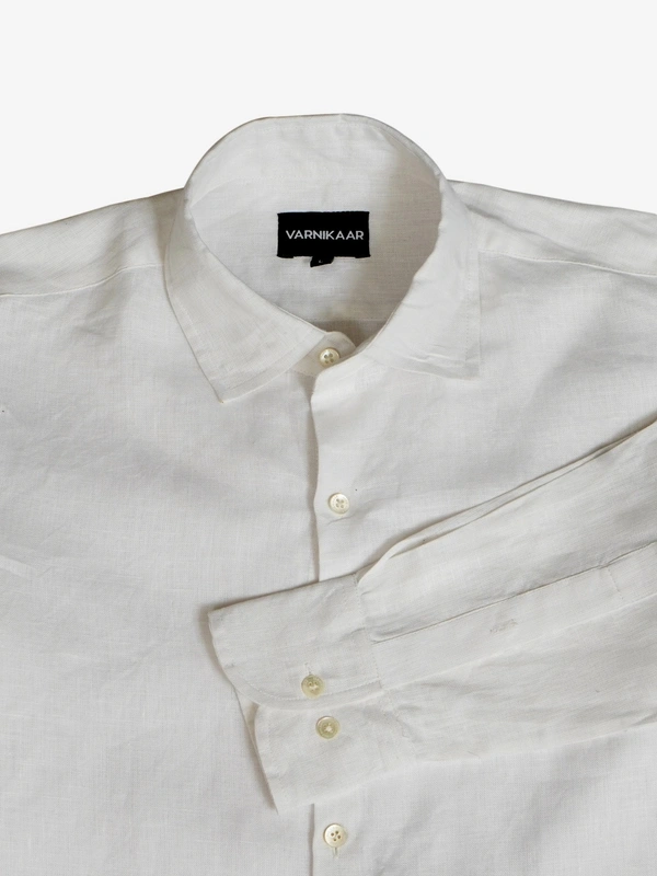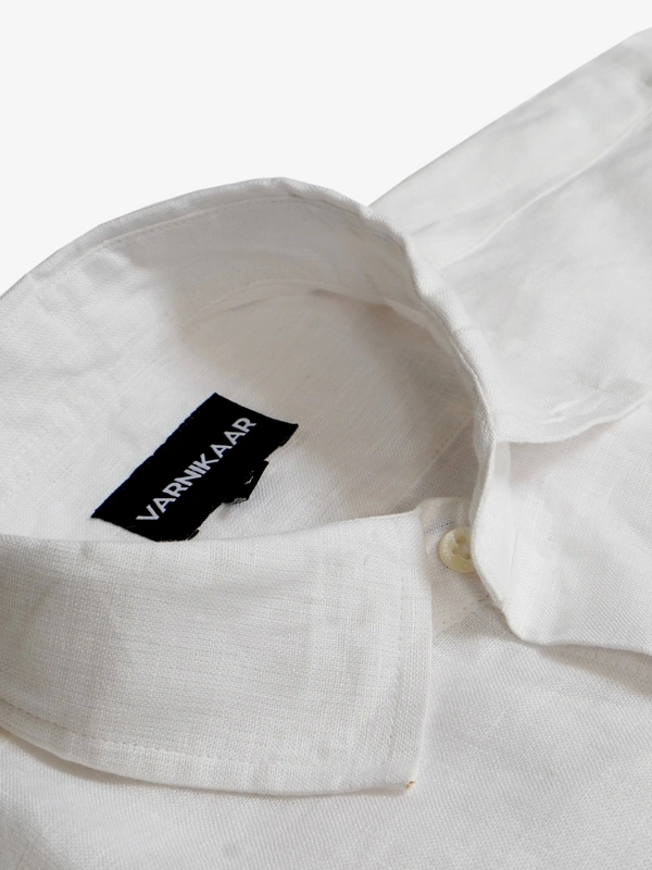 Crafted from breathable European linen, the White Serenity shirt delivers a cool, refreshing feel against your skin, making it ideal for warm weather.